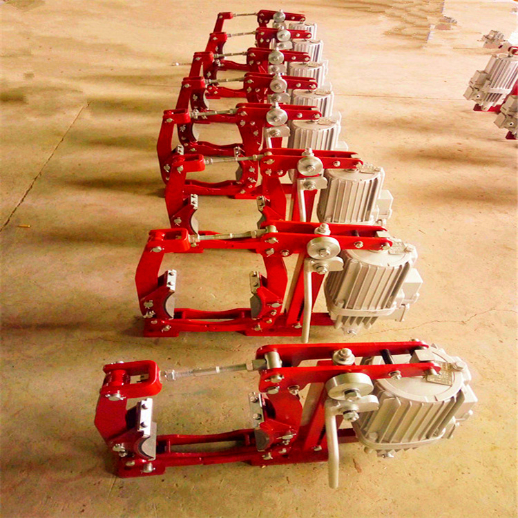 1、底座2、電液推動器3、三角板4、制動彈簧5、力矩調節(jié)螺母6、緊固螺母7、補償緊定螺栓、螺母8、拔銷9、補償套10、制動拉桿l1、防松螺母、隔套、墊片 12、制動臂 13、制動瓦塊 14、鎖緊螺栓、螺母15、退距均等杠桿 l6、互鎖銷