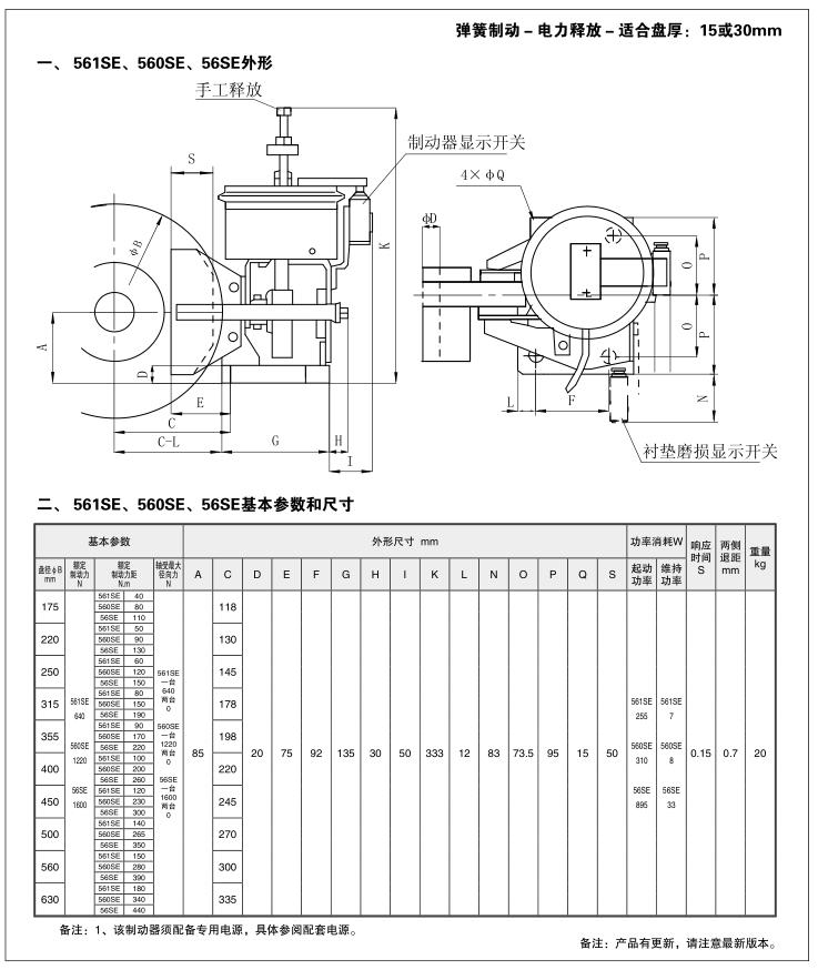 561SE.560SE.56SE電磁失效保護盤式制動器